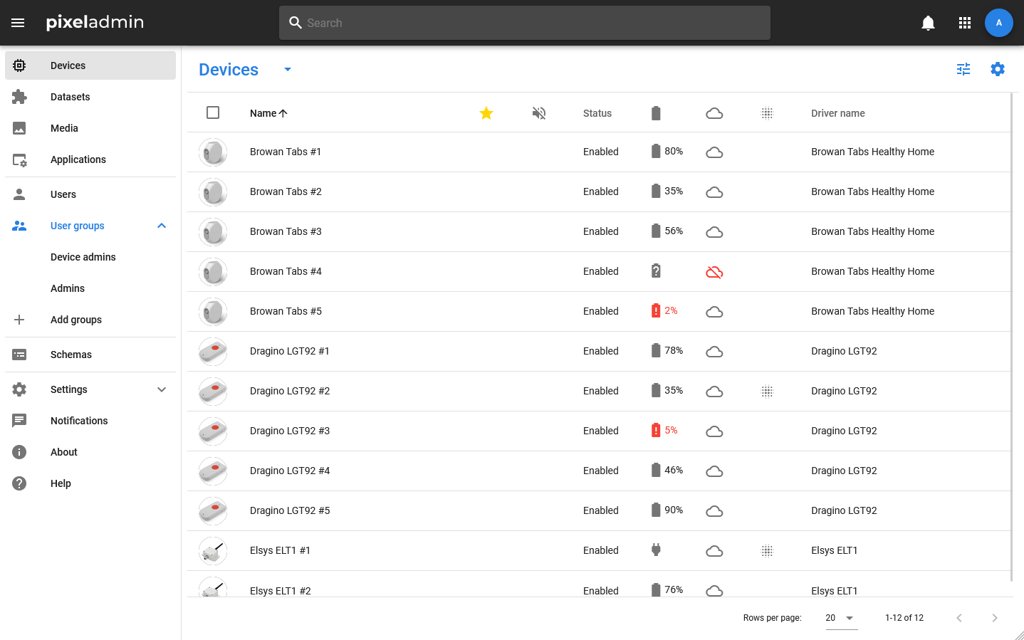 In the Pixel Admin application, you can view, edit, create and delete the data types that Pixel Core works with and the applications that access it. The main types are set in the system when it is installed.