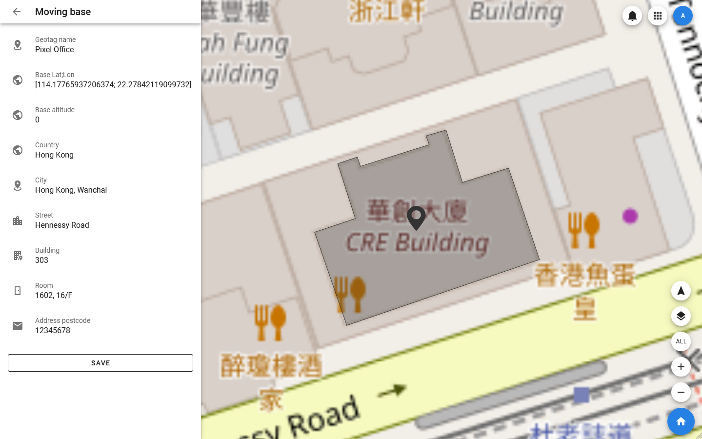 - In the modal window that opens, specify the name of the geotag, its height, address, image.